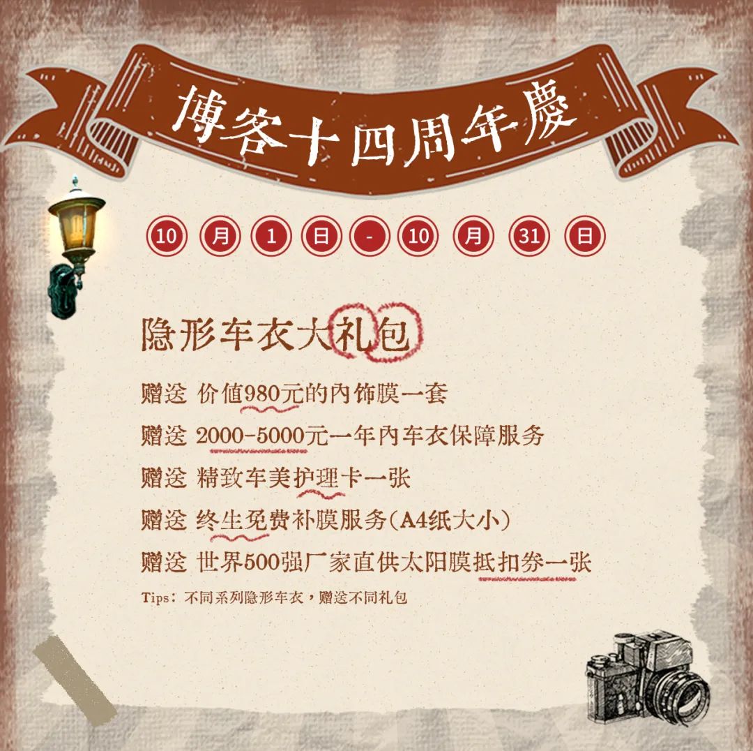 (Tips:不同系列隱形車衣,贈送不同禮包)